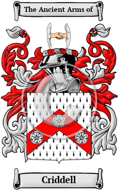 The surname Criddell was first found in Somerset where they held a family seat as Lords of the Manor. The Saxon influence of English history diminished after the Battle of Hastings in 1066. The language of the courts was French for the next three centuries and the Norman ambience prevailed. But Saxon surnames survived and the family name was first referenced in the year 1327 when Richard Cridde held estates in that shire.