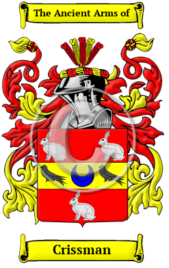 England Etymology of CrissmanWhat does the name Crissman mean? The name Crissman is of Anglo-Saxon origin. It was name for a person born at Christmas. During the Middle Ages, many nicknames referred to various religious festivals, medieval name days, or the particular day of the week when feudal services were fulfilled. "Camden thinks, as a baptismal name, in consequence of the individual having been born on the day of the festival. In like manner in France, Noel was first a Christian, afterwards a family name." 1 Early Origins of the Crissman familyThe surname Crissman was first found in Essex where Geoffrey Cristesmasse was first listed in the Hundredorum Rolls of 1273. The same rolls included: Felicia Cristemasse, Huntingdonshire; and Hugh Cristemasse, Cambridgeshire. 2 "It is an ancient name in the eastern counties, and in the 13th century it was still established in the form of Cristemasse in Cambridgeshire and Hunts, and there were a few of the name in Essex. In 1433 John Crystmasse was a gentleman of Morden - Steeple in this county." 3 Early History of the Crissman familyThis web page shows only a small excerpt of our Crissman research. Another 101 words (7 lines of text) covering the years 1185, 1191, 1308, 1602 and 1634 are included under the topic Early Crissman History in all our PDF Extended History products and printed products wherever possible. Crissman Spelling VariationsSpelling variations in names were a common occurrence before English spelling was standardized a few hundred years ago. In the Middle Ages, even the literate spelled their names differently as the English language incorporated elements of French, Latin, and other European languages. Many variations of the name Crissman have been found, including Christmas, Cristmas, Cristmus, Christmus and many more. Early Notables of the Crissman familyGerard or Garrett Christmas (d. 1634), who "enjoyed a high reputation as a carver and statuary in the reign of James I. His origin is uncertain, but there would appear to be a connection between him and a family of the same name at Colchester. According to Vertue he designed Aldersgate, and carved on the northern side of it an equestrian figure of James I in bas-relief. Vertue interprets the letters C... Another 71 words (5 lines of text) are included under the topic Early Crissman Notables in all our PDF Extended History products and printed products wherever possible. Crissman Rankingthe United States, the name Crissman is the 9,350th most popular surname with an estimated 2,487 people with that name. 4 Migration of the Crissman familyFamilies began migrating abroad in enormous numbers because of the political and religious discontent in England. Often faced with persecution and starvation in England, the possibilities of the New World attracted many English people. Although the ocean trips took many lives, those who did get to North America were instrumental in building the necessary groundwork for what would become powerful new nations. Among early immigrants of the Crissman surname to cross the Atlantic and come to North America were: Isobel Christmas who settled in Virginia in 1642; Richard settled in Virginia in 1647; and H. Christmas arrived with his wife and two children in New York in 1820..