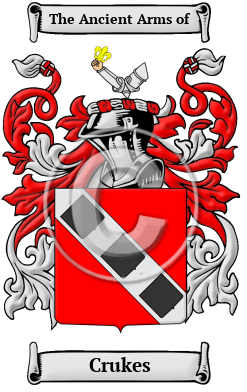 | Crukes History, Family Crest & Coats of Arms Etymology of CrukesWhat does the name Crukes mean? The ancestry of the name Crukes goes back to the Vikings, who settled on the rocky shores of ancient Scotland. Crukes was a name for a crooked person. A broad and miscellaneous class of surnames, nickname surnames referred to a characteristic of the first person who used the name. They can describe the bearer's favored style of clothing, appearance, habits, or character. This nickname was originally derived from the Old Norman word crok which meant "hook" or "something crooked." While this origin can be expected, more accurately, the name was for someone "who came from Crook (hill, or bend of a river), the name of several places in England and Scotland." 1 Early Origins of the Crukes familyThe surname Crukes was first found in Westmorland at Crook, a chapelry, in the parish, union, and ward of Kendal 2 of at Crook, a hamlet in the parish of Shevington, Lancashire. We find the earliest record of the family at the latter location. Specifically, the Lay Subsidy Rolls of 1332 list William del Crok there at that time. 3 Kirby's Quest lists Kohn de Cruk in Somerset, 1 Edward III (during the first years of King Edward III's reign.) 4 Later the Yorkshire Poll Tax Rolls of 1379 listed: Johannes de Crake; Thomas de Crokes; and Johanna de Crekes. 3 Moving further north into Scotland, two of the first entries were Malcolm Crok and Robert Cruk of Fingaldestone, Lanarkshire, who both rendered homage to King Edward I in his conquest of Scotland. A few years later, a benefice was reserved to Adam Croke of the diocese of St. Andrew in 1329 and John Cruke was a tenant in Garvalde under the Douglas in 1376. 5 Early History of the Crukes familyThis web page shows only a small excerpt of our Crukes research. Another 138 words (10 lines of text) covering the years 1560, 1562, 1574, 1575, 1576, 1582, 1591, 1617, 1635, 1641, 1649, 1674, 1699 and 1890 are included under the topic Early Crukes History in all our PDF Extended History products and printed products wherever possible. Crukes Spelling VariationsContemporary spellings of ancient Scottish names often bear little resemblance to the original recorded versions. These spelling variations result from the fact that medieval scribes spelled words and names alike according to their sounds. Crukes has been spelled Crook, Crooke, Crooks, Cruik, Cruiks, Crok, Cruke, Crukes, Cruikes and many more. Early Notables of the Crukes familyAndrew Crooke (died 1674) and William Cooke (died 1641) who were London publisher partners who published significant texts of English Renaissance drama, most notably of the plays of James Shirley.
