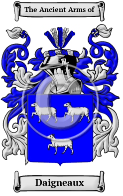 | Daigneaux History, Family Crest & Coats of Arms Etymology of DaigneauxWhat does the name Daigneaux mean? The name Daigneaux has a long French heritage that first began in the northern region of Normandy. The name is derived from when the family lived in the diocese of Coutances, in Normandy. 1 Early Origins of the Daigneaux familyThe surname Daigneaux was first found in Normandy (French: Normandie), the former Duchy of Normandy, where they held a family seat at Aigneaux in the diocese of Coutances in Rouen, and were members of the aristocracy of that region. The first of this name on record was Herbert D'Aigneaux who was descended from the Vicomte Caen in the Cotentin. The family gave its name to the parish of Aigneaux. It is assumed that Herbert joined the Duke of Normandy in his conquest of England in 1066 A.D. Sometime before 1074 Herbert sold part of his estates to Bishop Odo of Bayeux, and also purchased other lands from Corbin, his son. The Aigneaux family had a very important barony consisting of many fiefs along the River Lavire for seven miles, together with St.-Contest at Amfreville on the island of Marie. They were the benefactors of many religious establishments. Early History of the Daigneaux familyThis web page shows only a small excerpt of our Daigneaux research. Another 80 words (6 lines of text) covering the years 1680 and 1736 are included under the topic Early Daigneaux History in all our PDF Extended History products and printed products wherever possible. Daigneaux Spelling VariationsOne can encounter great variation in the spelling of French surnames; in part, as spelling, and the spelling names was not yet standardized during the early development of the written French language. Later, there was much branching and movement of families, and spellings would change according to region. Variations of the name Daigneaux include Daignault, D'Aigneau, Daigneau, Daignaux, D'Aiognaux, Daignaud, D'Aignaud, D'Aignault, D'Aigneaux, Daigneaux, Deneau, Deneault, Denyau, Denais, Deinout, Deinieau, Denault, Denaut, Denaux, Deneux, Denieau, Daieneault, D'Aieneault, Daineau, D'Aineau, Aignault and many more. Early Notables of the Daigneaux familyMore information is included under the topic Early Daigneaux Notables in all our PDF Extended History products and printed products wherever possible. Migration of the Daigneaux familyMigration from France to New France or Quebec as it was now more popularly called, continued from France until it fell in 1759. By 1675, there were 7000 French in Quebec. By the same year the Acadian presence in Nova Scotia, New Brunswick and Prince Edward Island had reached 500. In the treaty of Utrecht, the Acadians were ceded by France to Britain in 1713. In 1755, 10,000 French Acadians refused to take an oath of allegiance to England and were deported. They found refuge in Louisiana. In 1793, the remaining French in these provinces came under British rule. Meanwhile, in Quebec, the French race flourished, founding in Lower Canada, one of the two great solitudes which became Canada. Many of this distinguished family name Daigneaux were prominent in social, cultural, religious and political affairs in France and New France. Amongst the settlers in North America with this distinguished name Daigneaux were Jean Daignault settled in Quebec in 1665 from Brittany; Claude Denault arrived in Quebec in 1686 from Ile-de-France; Jacques Denault arrived in Quebec in 1740 from Normandy.