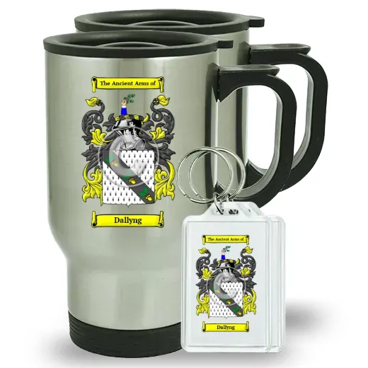 Pair of Travel Mugs and pair of Keychains