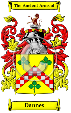 | Dannes History, Family Crest & Coats of Arms Etymology of DannesWhat does the name Dannes mean? The origins of the Dannes name lie with England's ancient Anglo-Saxon culture. It comes from when the family lived in the valley or the dann. The surname often meant the dweller in the valley. 1 Alternatively the name could have been "derived from the name of an ancestor, 'the son of Daniel,' from nickname Dan. " 2 Early Origins of the Dannes familyThe surname Dannes was first found in Sussex where Geoffrey atte Danne was listed in the Subsidy Rolls of 1327. Later in Sussex, Simon Dann was found in the Subsidy Rolls for 1332. 1 Early History of the Dannes familyThis web page shows only a small excerpt of our Dannes research. Another 80 words (6 lines of text) covering the year 1327 is included under the topic Early Dannes History in all our PDF Extended History products and printed products wherever possible. Dannes Spelling VariationsBefore the last few hundred years, the English language had no fast system of spelling rules. For that reason, spelling variations are commonly found in early Anglo-Saxon surnames. Over the years, many variations of the name Dannes were recorded, including Dan, Dann, Danne, Dans, Danns, Dannes and others. Early Notables of the Dannes familyMore information is included under the topic Early Dannes Notables in all our PDF Extended History products and printed products wherever possible. Migration of the Dannes family to IrelandSome of the Dannes family moved to Ireland, but this topic is not covered in this excerpt. More information about their life in Ireland is included in all our PDF Extended History products and printed products wherever possible.