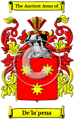 | De'la'pena History, Family Crest & Coats of Arms Etymology of De'la'penaWhat does the name De'la'pena mean? Noble surnames, such as De'la'pena, evoke images of the ancient homeland of the Spanish people. The original bearer of the name De'la'pena, which is a local surname, once lived, held land, or was born in the beautiful region of Spain. In Spain, hereditary surnames were adopted according to fairly general rules and during the late Middle Ages, names that were derived from localities became increasingly widespread. Local names originally denoted the proprietorship of the village or estate. The De'la'pena family originally lived near a cliff or on a rocky patch of land. Ancient records reveal the name De'la'pena is derived from the Spanish word "peña," which means "rock," "crag" or "cliff." Early Origins of the De'la'pena familyThe surname De'la'pena was first found in Castile, in north central Spain. Early History of the De'la'pena familyThis web page shows only a small excerpt of our De'la'pena research. Another 109 words (8 lines of text) covering the year 1338 is included under the topic Early De'la'pena History in all our PDF Extended History products and printed products wherever possible. De'la'pena Spelling VariationsSpelling variations of this family name include: Pena, Peña, Penas, Peñas, de Pena, de Peña, de la Pena, de la Peña, Peñal, Penal, Peñón, Peñon, Penón, Penon, Peño, Peno, Peñuela and many more. Early Notables of the De'la'pena familywere seventeenth century Spanish writer Juan Antonio de la Peña; eighteenth century Colombian military officer Vicente Peña; nineteenth century Colombian poet Belisario Peña; nineteenth century Ecuadoran jurist and diplomat Lorenzo R. Peña; nineteenth century Colombian naturalist Camilo Peña; nineteenth century Paraguayan publisher and politician Manuel Pedro... Another 45 words (3 lines of text) are included under the topic Early De'la'pena Notables in all our PDF Extended History products and printed products wherever possible. De'la'pena Rankingthe United States, the name De'la'pena is the 10,928th most popular surname with an estimated 2,487 people with that name. 1