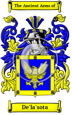 The original bearer of the name De'la'sota, which is a local surname, once lived, held land, or was born in the beautiful region of Spain. In Spain, hereditary surnames were adopted according to fairly general rules and during the late Middle Ages, names that were derived from localities became increasingly widespread. Local names originally denoted the proprietorship of the village or estate. The De'la'sota family originally lived in one of the numerous towns or villages named Soto. The place-name Soto is derived from the Spanish word "soto," which refers to a "thicket" or "grove." This word is itself derived from the Latin word "saltus," which refers to a pasture land containing a forest or wood.