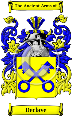 The surname Declave was first found in Poitou, where the family was anciently established in a village of Aunis, in the department of Charente-Inférieure, in the district of La Rochelle.
