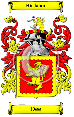| Dee History, Family Crest & Coats of Arms Etymology of DeeWhat does the name Dee mean? The River Dee flows through parts of both Wales and England, forming part of the border between the two countries. South east of Cumbria, a part of the Craven region traditionally part of the West Riding of Yorkshire is home to another River Dee and of course, there is another in Aberdeenshire, Scotland. Early Origins and Etymology of DeeThe surname Dee was first found in Cheshire where the name derives its name from the River Dee, which was first known as Deoua c. 150, an ancient Celtic river-name meaning "the goddess, the holy one." 1 Early History of the Dee familyThis web page shows only a small excerpt of our Dee research. Another 73 words (5 lines of text) covering the years 1527, 1579, 1608, 1634, 1638, 1651, 1657 and 1720 are included under the topic Early Dee History in all our PDF Extended History products and printed products wherever possible. Dee Spelling VariationsSpelling variations of this family name include: Dee, Die and others. Early Notables of the Dee family- John Dee (1527- c.1608), Welsh noted mathematician, astronomer, astrologer, occultist, navigator, and consultant to Queen Elizabeth I; and Arthur Dee (1579-1651), his eldest son who became a noted phy...