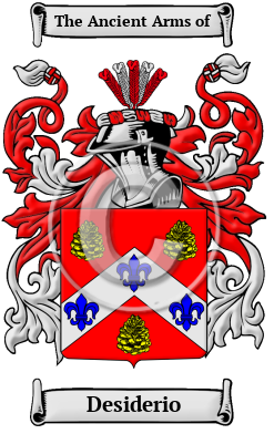 | Desiderio History, Family Crest & Coats of Arms Early Origins of the Desiderio familyThe surname Desiderio was first found in Bolgna (Latin: Bononia), the largest city and the capital of Emilia-Romagna Region. The famous University of Bolgna was founded in the 11th century, by the 13th century the student body was nearly 10,000. Dante and Petrarch studied there. Tisso was tried there for 1564 for writing satirical poems. Bologna naturally, is famous for its sausages. But many noted scholars were born there. In those ancient times only persons of rank, the podesta, clergy, city officials, army officers, artists, landowners were entered into the records. To be recorded at this time was in itself a family honor. Early History of the Desiderio familyThis web page shows only a small excerpt of our Desiderio research. Another 115 words (8 lines of text) covering the years 1273, 1347, 1387, 1593, 1603 and 1620 are included under the topic Early Desiderio History in all our PDF Extended History products and printed products wherever possible. Desiderio Spelling VariationsSpelling variations of this family name include: Desiderio, Desideri, Desiderii and others. Early Notables of the Desiderio family- Monsù Desiderio (1593-1620), born François de Nomé, French painter active mainly in Naples