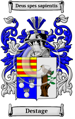 The surname Destage was first found in Burgundy (French: Bourgogne), an administrative and historical region of east-central France where they held a family seat.