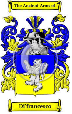 | Di'francesco History, Family Crest & Coats of Arms Etymology of Di'francescoWhat does the name Di'francesco mean? A variety of distinguished and notable names have emerged from the beautiful and historical Italian region of Tuscany, including the notable surname Di'francesco. During the Middle Ages, as populations grew and travel between regions became more frequent, the people of Tuscany, who were originally known only by a single name, found it necessary to adopt a second name to identify themselves and their families. This process of adopting fixed hereditary surnames in Italy began in the 10th and 11th centuries, but it was not completed until the modern era. The development of Italian hereditary surnames followed general principles and were characterized by derivatives from one's given name. The patronymic surname, which is derived from the father's given name, was one of the most common name types found in the region of Tuscany. This system of name-making was widely used because it linked well with the existing Feudal System and during the Christian era, many people named their children after saints and biblical figures. The surname Di'francesco came from the very popular medieval given name Francis, which itself was originally derived from the Latin Franciscus. This was originally a name for a Frenchman. Early Origins of the Di'francesco familyThe surname Di'francesco was first found in Siena where Bartolomeo di Francesco lived in 1349. Early History of the Di'francesco familyThis web page shows only a small excerpt of our Di'francesco research. The years 1415, 1443, 1468, 1492, 1530, 1540, 1552, 1570, 1580, 1596, 1599, 1611, 1648, 1650, 1680, 1689 and 1729 are included under the topic Early Di'francesco History in all our PDF Extended History products and printed products wherever possible. Di'francesco Spelling VariationsIn comparison with other European surnames, Italian surnames have a surprising number of forms. They reflect the regional variations and the many dialects of the Italian language, each with its own distinctive features. For example, in Northern Italy the typical Italian surname suffix is "i", whereas in Southern Italy it is "o". Additionally, spelling changes frequently occurred because medieval scribes and church officials often spelled names as they sounded rather than according to any specific spelling rules. The spelling variations in the name Di'francesco include Franceschi, Francesco, Francesca, De Franceschi, De Francesco, De Francisci, De Franciscis, Di Francesco, Francescatti, Franchetti, Franciscello, Franceschelli, Franceschetti, Franceschetto, Franceschet, Franceschini, Franceschin, Franceschinel, Francescotti, Francesconi, Francescon, Francescato, Cecchi, Ceschi, Checchi, Chini and many more. Early Notables of the Di'francesco familyPiero della Francesca (c. 1415-1492), was an Early Renaissance painter is famous for his depiction of perspective. He also wrote several books on this subject. Francesco de Franceschi (active 1443-1468) was an Italian Renaissance painter. Francesco Franceschi (died c. 1599) was a printer in the Italian Renaissance and patriarch of the Franceschi printing family. Paolo dei Franceschi (c. 1540 - 1596), was a Flemish painter. Doctor Flaminio Franceschini was a law professor at the University of Padua in 1580. Vittore de Franceschi was a Roman Catholic prelate who served as Bishop of Famagusta (1552-?)
