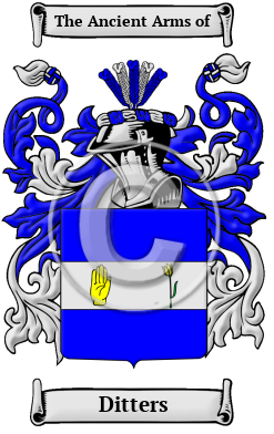The surname Ditters was first found in Bohemia, where the name was an integral part of the feudal society which would shape modern European history. Many prominent branches of the family would strive to make this name renowned as they contributed to the social, economic and political affairs of the region.