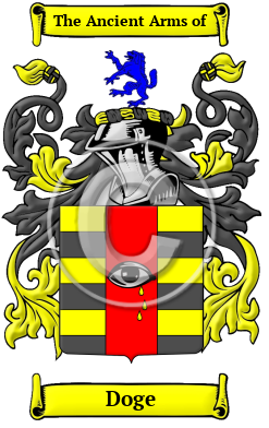 | Doge History, Family Crest & Coats of Arms Etymology of DogeWhat does the name Doge mean? The Doge name is an important part of the history of the ancient Anglo-Saxon tribes of Britain. Doge is derived from the baptismal name Dod, the short form of Roger. 1 Baptismal names began to appear as surnames relatively late in the growth of the naming tradition. This is a little surprising, given the popularity of biblical figures in the Christian countries of Europe. Nevertheless, surnames derived from baptismal names grew in popularity during the Middle Ages, and have become one of the foremost sources for surnames. Early Origins of the Doge familyThe surname Doge was first found in Yorkshire where Doge filius Arnaldi was listed in the Pipe Rolls in 1196. In nearby Lancashire, Wigot filius Doge was listed there in the Curia Regis Rolls of 1214 and later Dogge was listed in the Assize Rolls of 1246. In Gloucestershire, Robert and Nicholas Dogge were listed in the Curia Regis Rolls of 1206. 2 To the south and west, in Stoke-Climsland, Cornwall "Climson belonged formerly to the family of Doidge, who had their seat there." 3 Early History of the Doge familyThis web page shows only a small excerpt of our Doge research. Another 78 words (6 lines of text) covering the years 1196, 1214, 1515, 1546, 1559, 1583, 1595, 1610, 1620, 1629, 1639, 1650, 1651, 1655, 1656, 1674, 1697 and 1890 are included under the topic Early Doge History in all our PDF Extended History products and printed products wherever possible. Doge Spelling VariationsBefore the last few hundred years, the English language had no fast system of spelling rules. For that reason, spelling variations are commonly found in early Anglo-Saxon surnames. Over the years, many variations of the name Doge were recorded, including Dodge, Doidge, Doge, Doige, Doddge, Doges, Dodges, Doidges and many more. Early Notables of the Doge familyLeonard Digges (c.1515-c.1559), English mathematician and surveyor, credited with the invention of the theodolite; Sir Thomas Digges (1546-1595), an English mathematician and astronomer; Sir Dudley Digges (c.1583-1639), an English diplomat and politician who sat in the House of Commons between 1610 and 1629, known as a "Virginia adventurer," an investor who ventured his capital in the Virginia Company of London... Another 60 words (4 lines of text) are included under the topic Early Doge Notables in all our PDF Extended History products and printed products wherever possible. Migration of the Doge family to IrelandSome of the Doge family moved to Ireland, but this topic is not covered in this excerpt. Another 50 words (4 lines of text) about their life in Ireland is included in all our PDF Extended History products and printed products wherever possible.