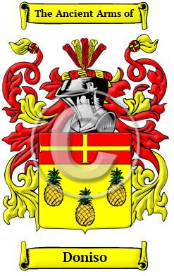 | Doniso History, Family Crest & Coats of Arms Etymology of DonisoWhat does the name Doniso mean? From the ancient and picturesque Italian region of Venice emerged a variety of distinguished names, including the notable surname Doniso. Although people were originally known only by a single name, it became necessary for people to adopt a second name to identify themselves as populations grew and travel became more frequent. The process of adopting fixed hereditary surnames was not complete until the modern era, but the use of hereditary family names in Italy began in the 10th and 11th centuries. Italian hereditary surnames were developed according to fairly general principles and they are characterized by a profusion of derivatives coined from given names. Although the most traditional type of family name found in the region of Venice is the patronymic surname, which is derived from the father's given name, local surnames are also found. Local names, which are the least frequent of the major types of surnames found in Italy, are derived from a place-name where the original bearer once resided or held land. Often Italian local surnames bore the prefix "di," which signifies emigration from one place to another, but does not necessarily denote nobility. The Doniso family lived in the city of Verona, where members of the Dionisi family were involved in the Noble Council in 1422. Early Origins of the Doniso familyThe surname Doniso was first found in the city of Verona, where members of the Dionisi family were involved in the Noble Council in 1422. Early History of the Doniso familyThis web page shows only a small excerpt of our Doniso research. The years 1736, 1797, 1818, 1819, 1824 and 1830 are included under the topic Early Doniso History in all our PDF Extended History products and printed products wherever possible. Doniso Spelling VariationsItalian surnames come in far more variations than the names of most other nationalities. Regional traditions and dialects are a decisive factor in this characteristic. For example, northern names tend to end in "o", while southern in "i". Also important, but not unique to Italy, was the fact that before dictionaries and the printing press most scribes simply spelled words according to their sounds. The predictable result was an enormous number of spelling variations. The recorded spellings of Doniso include Dionisio, Dioniso, Donio, Dionisotti, Dionisi, Dionis, Doniso, Donisi, D'Onise, D'Onisi, Addonisio, Addonizio, Denisi, Dionigi and many more. Early Notables of the Doniso familyPaolo Dionisi of Verona during the 16th century, who studied at the University of Padua and became a teacher of medicine; Filippo Lorenzo Dionisi of Rome was a theologian and philosopher with exceptional talents in Latin literature. He became a priest in 1736. Giovanni Iacopo Dionisi was a priest in Verona around this time. A later individual of the Doniso lineage was Carlo Dionisotti, born in 1824, a prominent lawyer in Vercelli.
