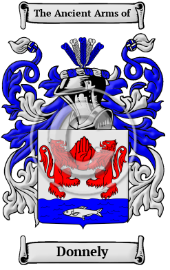 Ireland Etymology of DonnelyWhat does the name Donnely mean? Today's Irish surnames are underpinned by a multitude of rich histories. The name Donnely originally appeared in Gaelic as Ó Donnghaile, derived from the words "donn," which means "brown," and "gal," which means "valor." 1 Early Origins of the Donnely familyThe surname Donnely was first found in County Donegal. Later, the sept expanded eastward and became based at Ballydonnelly in the county of Tyrone. The name continues to be common in this area of Ireland today. The name is believed to be directly descended from King Niall of the Nine Hostages, the great Irish general/king who died by the River Seine in France about 365 A.D., after soundly defeating the Romans and being instrumental in their return to the south. Niall made King Arthur's exploits seem rather small by comparison. The Donnelly chief was always elected Chief Marshall of the O'Neill forces and their exploits have filled the pages of Irish history compiled by the Four Masters. They are a part of the great Clann Eoghan(Owen). They claim to be seventeenth in descent from the great King Niall, and their territories were at Ballydonnelly in County Tyrone. Early History of the Donnely familyThis web page shows only a small excerpt of our Donnely research. Another 111 words (8 lines of text) covering the years 1603, 1641, 1650, 1716, 1786, 1816, 1825, 1826 and 1836 are included under the topic Early Donnely History in all our PDF Extended History products and printed products wherever possible. Donnely Spelling VariationsThe Middle Ages saw a great number of spelling variations for surnames common to the Irish landscape. One reason for these variations is the fact that surnames were not rigidly fixed by this period. The following variations for the name Donnely were encountered in the archives: Donnely, Donnelly, Donelly, O'Donnelly, O'Donelly, Donnolly, Donnally, Donolly, Donnilly, Donnelie, Donneley, O'Donnally and many more. Early Notables of the Donnely familyPatrick Donnelly (1650-1716), an Irish Roman Catholic Bishop, known as The Bard of Armagh, born in Desertcreaght, Cookstown, County Tyrone.