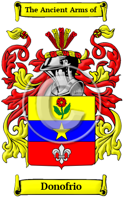 | Donofrio History, Family Crest & Coats of Arms Etymology of DonofrioWhat does the name Donofrio mean? The Donofrio surname comes from the Italian personal name Onofrio, which is derived from the Latin Onnuphrius. It became a popular Christian name, mainly in Southern Italy due to St. Onofrio, a 5th-century Egyptian martyr. Early Origins of the Donofrio familyThe surname Donofrio was first found in Emilia. In those ancient times only persons of rank, the podesta, clergy, city officials, army officers, artists, landowners were entered into the records. To be recorded at this time, was in itself a family honor. Early History of the Donofrio familyThis web page shows only a small excerpt of our Donofrio research. Another 115 words (8 lines of text) are included under the topic Early Donofrio History in all our PDF Extended History products and printed products wherever possible. Donofrio Spelling VariationsSpelling variations of this family name include: D'Onofrio, D'Onofri, Nofri, Noferi, Noferini, Onofrio and many more. Early Notables of the Donofrio familyMore information is included under the topic Early Donofrio Notables in all our PDF Extended History products and printed products wherever possible. Donofrio Rankingthe United States, the name Donofrio is the 6,766th most popular surname with an estimated 4,974 people with that name. 1