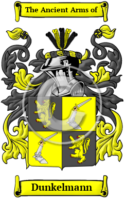Germany Etymology of DunkelmannWhat does the name Dunkelmann mean? The bountiful region surrounding the Rhine river is the birthplace of the name Dunkelmann. A single name was, at one time, all that people needed. However, increasing ease of travel and the burgeoning populations forced people to adopt a hereditary surname to set themselves apart from others. A common form of surname found in the Rhineland was the local name, a name taken on from a place-name. Originally denoting the proprietorship of a village or estate, the German preposition von, which means from or of, used with local names, was taken as a mark of aristocracy. The surname Dunkelmann was given to someone who lived near a swamp. Ancient records reveal the name Dunkelmann is derived from the Old German word dunk, which referred to a small hill in a swampy area. The surname Dunkelmann is also of nickname origin and derived from the word dunck, or dunkel which means dark. One must assume that the original bearers of the surname Dunkelmann had dark physical features. Early Origins of the Dunkelmann familyThe surname Dunkelmann was first found in the Rhineland, where the name was closely identified in early mediaeval times with the feudal society which would become prominent throughout European history. The name would later emerge as a noble family with great influence, having many distinguished branches, and become noted for its involvement in social, economic and political affairs. The earliest individual member of this family to be mentioned in chronicles was Georg Dunckel who lived in Cologne on the Rhine river around 1186. Early History of the Dunkelmann familyThis web page shows only a small excerpt of our Dunkelmann research. Another 80 words (6 lines of text) covering the years 1811 and 1866 are included under the topic Early Dunkelmann History in all our PDF Extended History products and printed products wherever possible. Dunkelmann Spelling VariationsIn the medieval era, many different cultural groups lived in the German states. There are thus many regional variations of German surnames from that era. Westphalians spoke Low German, which is similar to modern Dutch. Many German names carry suffixes that identify where they came from. Others have phrases attached that identify something about the original bearer. Other variations in German names resulted from the fact that medieval scribes worked without the aid of any spelling rules. The spelling variations of the name Dunkelmann include Dunkel, Dunckel, Dunkelman, Dunkelmann, Dunkell, Dunkle, Dunker and many more. Early Notables of the Dunkelmann familyMore information is included under the topic Early Dunkelmann Notables in all our PDF Extended History products and printed products wherever possible. Migration of the Dunkelmann familyThe great European flow of migration to North America, which began in the middle of the 17th century and continued into the 20th century, was particularly attractive to those from the Rhineland who wished to escape either poverty or religious persecution. Many of those who left the Rhineland to seek their fortunes in the prosperous and free New World settled in the major urban centers of the United States and Canada. In the United States, the settlers from the Rhineland passed through immigration centers like that of Ellis Island, most of them moving on to Pennsylvania, Ohio, Texas, Illinois, California, and New York. In Canada, the majority of Rhinelanders settled in Ontario and the prairie provinces. An examination of passenger and immigration lists has revealed many important settlers to North America bearing the name Dunkelmann, or one of its variants above: Barbara Dunckel, who arrived in Philadelphia in 1785; Johannes Dunckel arrived in Philadelphia in 1730; John Dunckel, age 26; settled in America in 1709.