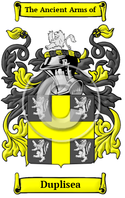 France Etymology of DupliseaWhat does the name Duplisea mean? Noble surnames, such as Duplisea, evoke images of the ancient homeland of the French people. The original bearer of the name Duplisea, which is a local surname, once lived, held land, or was born in the beautiful region of Maine. In France, hereditary surnames were adopted according to fairly general rules and during the late Middle Ages, names that were derived from localities became increasingly widespread. Local names originally denoted the proprietorship of the village or estate.The Duplisea family originally derived its surname from the place called Plessis, which was in Maine. Early Origins of the Duplisea familyThe surname Duplisea was first found in Maine. The name Du Plessis is cited since the thirteenth century with a family of Chantillon, originally from Maine, who possessed the marquisate of Nonant. Geoffroy Du Plessis, chancellor of the Church of Tours and vicar, was elected bishop of Évreux, a commune located in Normandy, in 1310. Perrot Du Plessis was a squire in 1355. Nicolas Duplessis settled at Cap-de-la-Madeleine, Quebec during the 17th century. In 1663, after his arrival in Canada, Nicolas married Marie Crevier, daughter of Christophe and Jeanne (née Enrad). 1 Early History of the Duplisea familyThis web page shows only a small excerpt of our Duplisea research. The years 1549, 1554, 1586, 1605, 1627, 1630, 1663, 1680, 1690, 1694, 1699, 1725, 1727, 1732, 1733, 1735, 1740, 1741, 1750, 1766 and 1774 are included under the topic Early Duplisea History in all our PDF Extended History products and printed products wherever possible. Duplisea Spelling VariationsSpelling variations of this family name include: Duplessis, Duplesis, Duplessi, Du Plessis, Duplessy, Du Plessy and many more. Early Notables of the Duplisea familyPhilippe Du Plessis-Mornay, lord of Plessis-Marly and a diplomat around 1549; Bertrand Du Plessis was councilor at the cour-des-aides of Perigueux in 1554; Jacques Du Plessis was bishop of Lucon in 1586; Suzanne de Bruc was marquise of Du Plessis in 1605 and her children carried the lineage; Jacques de Rougé marquis of Du Plessis was lieutenant-colonel in 1627; Guillaume Du Plessis de la Brunetière, born at the diocese of Angers in 1630, was bishop of Saintes; Pierre-Michel Du Plessis was an architect and engineer of the king in 1690; François-Xavier Du Plessis was a Jesuit around 1694; Joseph-Siffred Du Plessis... Another 104 words (7 lines of text) are included under the topic Early Duplisea Notables in all our PDF Extended History products and printed products wherever possible. Migration of the Duplisea familySome of the first settlers of this family name or some of its variants were: 160 individuals of the lineage who arrived from France onto Canadian shores between 1600 and 1900. Among them, Anne Duplessis married in 1665 in Quebec.