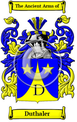 The surname Duthaler was first found in Switzerland, where the name came from humble beginnings but gained a significant reputation for its contribution to the emerging mediaeval society. It later became more prominent as many branches of the same house acquired distant estates and branches, some in foreign countries, always elevating their social status by their great contributions to society.
