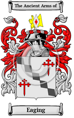| Eaging History, Family Crest & Coats of Arms Etymology of EagingWhat does the name Eaging mean? The name Eaging is from the ancient Anglo-Saxon culture of the Britain and comes from the baptismal name for the son of Edward. This surname was a diminutive form of Ede-kin. 1 Early Origins of the Eaging familyThe surname Eaging was first found in Oxfordshire where as a forename Edekin Gomey was recorded in the HUndrtedorum Rolls of 1297. The same rolls included an entry for Joan Edekin. Later, Elena Edkynes was listed in the Subsidy Rolls for Somerset in 1327. 2 "Ekins was the name of a gentle family owning, in the 17th and 18th centuries, Favell manor and other properties in Northamptonshire, which were sold in 1814 for £23,970." 3 Early History of the Eaging familyThis web page shows only a small excerpt of our Eaging research. Another 190 words (14 lines of text) covering the years 1066, 1279, 1300, 1321, 1327, 1598, 1600, 1693, 1702, 1730, 1749, 1766, 1768, 1781, 1782, 1791, 1809, 1855 and 1890 are included under the topic Early Eaging History in all our PDF Extended History products and printed products wherever possible. Eaging Spelling VariationsThe first dictionaries that appeared in the last few hundred years did much to standardize the English language. Before that time, spelling variations in names were a common occurrence. The language was changing, incorporating pieces of other languages, and the spelling of names changed with it. Eaging has been spelled many different ways, including Eakin, Eakins, Ekins, Ekin, Eaking, Heakins and many more. Early Notables of the Eaging familyJeffrey Ekins (d. 1791), Dean of Carlisle, a native of Barton-Seagrave, Northamptonshire, of which parish his father, the Rev. Jeffery Ekins, M.A., was rector. He received his education at Eton, whence in 1749 he was elected to King's College, Cambridge, where he obtained a fellowship. He married in 1766 Anne, daughter of Philip Baker, Esq. of Colston, Wiltshire, and sister of the wife of his brother, John Ekins, Dean of Salisbury. 4
