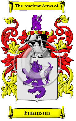 The name Emanson has a rich and ancient history. It is an Anglo-Saxon name that was originally derived from the baptismal name for the son of Emma. "Emma (d. 1052), called Ælfgifu, queen, the daughter of Richard the Fearless, Duke of the Normans, by Gunnor, and legitimated by the duke's subsequent marriage with her mother. She was married to King Ethelred or Æthelred the Unready in 1002. This marriage prepared the way for the future conquest of England by the Normans, and was held to give the Conqueror some right to the crown. " 1