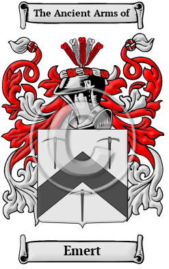 | Emert History, Family Crest & Coats of Arms Etymology of EmertWhat does the name Emert mean? The ancestors of the bearers of the Emert family name are thought have lived in ancient Anglo-Saxon England. They were first found in Emberton in Buckinghamshire. 1 In the Domesday Book of 1086, the parish was known as Ambretone and literally meant "farmstead of a man called Eanbeorht," from the Old English personal name + "tun." 2 Early Origins of the Emert familyThe surname Emert was first found in Buckinghamshire at Emberton, a parish, in the union of Newport-Pagnell, hundred of Newport. 3 The chapelry of Embleton in Durham was an alternate origin of the family. "This place, anciently called Elmdene from its deep hollow glen abounding with elms, gave name to a family that became resident here about the commencement of the 13th century." 3 And it is here that the first record of the family was listed in the Pipe Rolls of 1230 as Roger de Emilton. Almost one hundred years later, Richard de Embeldon was listed in the same area in 1326. Norman de Embleton was listed in the Subsidy Rolls of Cumberland in 1332. 4 Embleton is also a parish, in the union of Alnwick in Northumberland. Early History of the Emert familyThis web page shows only a small excerpt of our Emert research. Another 104 words (7 lines of text) covering the years 1560 and 1688 are included under the topic Early Emert History in all our PDF Extended History products and printed products wherever possible. Emert Spelling VariationsUntil quite recently, the English language has lacked a definite system of spelling rules. Consequently, Anglo-Saxon surnames are characterized by a multitude of spelling variations. Changes in Anglo-Saxon names were influenced by the evolution of the English language, as it incorporated elements of French, Latin, and other languages. Although Medieval scribes and church officials recorded names as they sounded, so it is common to find one person referred to by several different spellings of his surname, even the most literate people varied the spelling of their own names. Variations of the name Emert include Emerton, Emberton, Emmerton and others. Early Notables of the Emert familyMore information is included under the topic Early Emert Notables in all our PDF Extended History products and printed products wherever possible. Emert Rankingthe United States, the name Emert is the 12,059th most popular surname with an estimated 2,487 people with that name. 5
