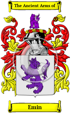 England Etymology of EminWhat does the name Emin mean? The history of the Emin name began with the ancient Anglo-Saxon tribes of Britain. The name is derived from the baptismal name for the son of Emma. "Emma (d. 1052), called Ælfgifu, queen, the daughter of Richard the Fearless, Duke of the Normans, by Gunnor, and legitimated by the duke's subsequent marriage with her mother. She was married to King Ethelred or Æthelred the Unready in 1002. This marriage prepared the way for the future conquest of England by the Normans, and was held to give the Conqueror some right to the crown. " 1 Early Origins of the Emin familyThe surname Emin was first found in Berkshire, where they held a family seat from very ancient times, some say well before the Norman Conquest and the arrival of Duke William at Hastings in 1066 A.D. Early History of the Emin familyThis web page shows only a small excerpt of our Emin research. Another 73 words (5 lines of text) are included under the topic Early Emin History in all our PDF Extended History products and printed products wherever possible. Emin Spelling VariationsSound was what guided spelling in the essentially pre-literate Middle Ages, so one person's name was often recorded under several variations during a single lifetime. Also, before the advent of the printing press and the first dictionaries, the English language was not standardized. Therefore, spelling variations were common, even among the names of the most literate people. Known variations of the Emin family name include Eman, Emmon, Emmond, Emmons, Emmonts, Emon, Emond, Emonds, Emonts and many more. Early Notables of the Emin familyMore information is included under the topic Early Emin Notables in all our PDF Extended History products and printed products wherever possible. Migration of the Emin familyFor political, religious, and economic reasons, thousands of English families boarded ships for Ireland, the Canadas, the America colonies, and many of smaller tropical colonies in the hope of finding better lives abroad. Although the passage on the cramped, dank ships caused many to arrive in the New World diseased and starving, those families that survived the trip often went on to make valuable contributions to those new societies to which they arrived. Early immigrants bearing the Emin surname or a spelling variation of the name include : Sarah Eman who settled in Edgar Town Massachusetts in 1820; Anne Emonds settled in Virginia in 1638; David Emon settled in New England in 1775; William Emonts settled in Philadelphia in 1875.