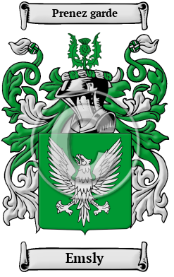 | Emsly History, Family Crest & Coats of Arms Etymology of EmslyWhat does the name Emsly mean? Of all the Anglo-Saxon names to come from Britain, Emsly is one of the most ancient. The name is a result of the original family having lived in Yorkshire, where they derived the family name from Helmsley. It was in the West Riding of Yorkshire, but has been lost to modern maps. The place-name was probably derived from the Old English personal name Helm, and ley or leah, which were Old English words for "a clearing in the woods." The translation of the place-name was "clearing belonging to Helm." 1 Early Origins of the Emsly familyThe surname Emsly was first found in Yorkshire at Helmsley, a market-town and parish, and the head of a union, in the wapentake of Ryedale. The town dates back to the time of Richard I. 2 The Domesday Book of 1086 lists the town as Elmeslac. 3 Helmsley Castle (also known anciently as Hamlake) is a medieval castle originally constructed in wood around 1120 by Walter l'Espec (died 1153.) In Scotland, many of the family originated in Aberdeenshire where the first record was that of William de Elmysley in 1333. 4 Later, Thomas Elmyslie was burgess in Aberdeenshire in 1498 and William Elmislie was reidare at Rutbven in 1574. 5 In America, Imlaystown, founded in 1690, in New Jersey was the home to James Henderson Imlay (1754-1823) and perhaps Gilbert Imlay (1754-1828), but the latter may have been born in Upper Freehold, New Jersey. Alexander (1794-1847), George (c. 1794-1846) and Peter Imlay (1797-1881) were brothers born in Aberdeen, Scotland who emigrated to Sydney, Australia c. 1830. Early History of the Emsly familyThis web page shows only a small excerpt of our Emsly research. Another 223 words (16 lines of text) covering the years 1296, 1492, 1524, 1567, 1599, 1600, 1686, 1715, 1736, 1738, 1745, 1762, 1774, 1796, 1801, 1802, 1805 and 1825 are included under the topic Early Emsly History in all our PDF Extended History products and printed products wherever possible. Emsly Spelling VariationsThe first dictionaries that appeared in the last few hundred years did much to standardize the English language. Before that time, spelling variations in names were a common occurrence. The language was changing, incorporating pieces of other languages, and the spelling of names changed with it. Emsly has been spelled many different ways, including Elmslie, Elmsley, Emsley, Elmesley, Helmsley, Emesley, Emesly, Ernele and many more. Early Notables of the Emsly familyJohn Elmsley (1762-1805), English-born, Chief Justice of Upper Canada (1796-1802) and later of Lower Canada (1802-1805.)