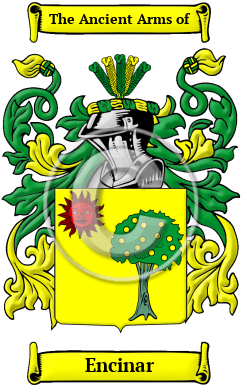 The Spanish surname Encinar is of noble and ancient descent. It appears to be a surname of topographic origin for someone who lived by a "holm-oak." The name Encinar is originally derived from the Spanish word "encina," which in the region of Castile means "oak tree."