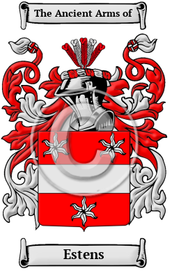 The name Estens arrived in England after the Norman Conquest of 1066. The Estens family lived in Cheshire, at the Manor of Eastham.