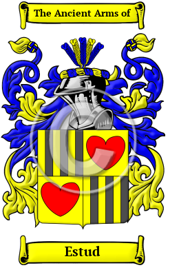 The surname Estud was first found in Burgundy (French: Bourgogne), an administrative and historical region of east-central France where the family has been known since ancient times.