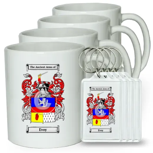 Set of 4 Coffee Mugs and Keychains