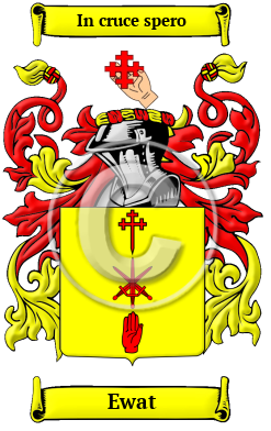 | Ewat History, Family Crest & Coats of Arms Early Origins of the Ewat familyThe surname Ewat was first found in Durham where they were Barons of Witton-le-Wear in the county of Durham, where they had their castle, as well as Lords of Kirkley, in Northumberland ; and descended from Eustace Fitzjohn, one of the greatest barons in the reign of Henry I. by his second marriage with the heiress of the Constable of Chester. Their younger grandson, Roger, received the barony of Warkworth from Henry II., and was the father of Richard, who founded Langley Abbey in Norfolk. King Richard gave him Eure in Buckinghamshire, from which place his grandson Hugh, the ancestor of the Lords Evers, derived his name." 1 They were a renowned Border family, whose exploits as march-wardens have been sung in many a tale and ballad, and last, but not least, by Sir Walter Scott: " When the Douglas true, and the bold Buccleuch 'Gainst keen Lord Evers stood." The Yorkshire Poll Tax Rolls of 1379 included Matilda Yowherd; Thomas Yowhvrd; and Johannes Ewehird. 2 Ewart, a township in the parish of Doddington, Northumberland was where the Scottish border Ewarts originated and are well represented in English directories through the years. 3 4 In Scotland, we find it was a "surname of an old family in Galloway, who are said to have come originally from Roxburghshire. Andrew Ewart was treasurer of Kirkcudbright in 1583." 5 Early History of the Ewat familyThis web page shows only a small excerpt of our Ewat research. Another 186 words (13 lines of text) covering the years 1218, 1255, 1288, 1579, 1589, 1607, 1615, 1646, 1678, 1683, 1688, 1759, 1787, 1788, 1792 and 1890 are included under the topic Early Ewat History in all our PDF Extended History products and printed products wherever possible. Ewat Spelling VariationsSpelling variations of this family name include: Ewart, Ewert and others. Early Notables of the Ewat familyNigel Ewart, Chief of Bodisbeg in 1607. Joseph Ewart (1759-1792), was a Scottish-born diplomatist, eldest son of the minister of Troquear in the stewartry of Kirkcudbright and was born on 30 April 1759. He was educated at Dumfries and at Edinburgh University, and then acted as travelling tutor to Macdonald of Clanronald. While abroad, Ewart made the acquaintance of Sir John Stepney, British minister at Dresden, and after that diplomatist... Another 69 words (5 lines of text) are included under the topic Early Ewat Notables in all our PDF Extended History products and printed products wherever possible. Migration of the Ewat family to IrelandSome of the Ewat family moved to Ireland, but this topic is not covered in this excerpt. Another 59 words (4 lines of text) about their life in Ireland is included in all our PDF Extended History products and printed products wherever possible. Migration of the Ewat familySome of the first settlers of this family name or some of its variants were: George, James, and John Ewart who arrived in Philadelphia, Pennsylvania in 1786; David and Elizabeth Ewert arrived in Philadelphia in 1840.