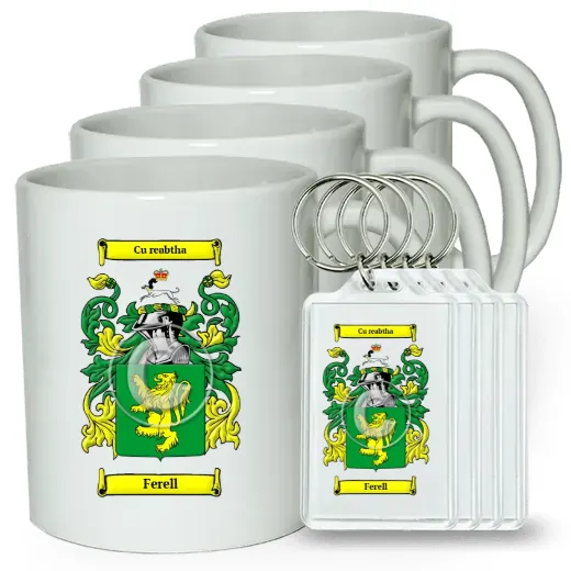 Set of 4 Coffee Mugs and Keychains