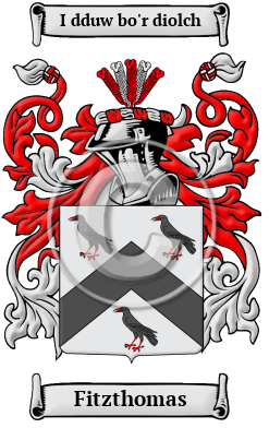 | Fitzthomas History, Family Crest & Coats of Arms Etymology of FitzthomasWhat does the name Fitzthomas mean? The roots of the surname Fitzthomas lie in the rugged landscape of Wales. Fitzthomas was a popular Medieval given throughout Europe, coming from the popular biblical name. It is ultimately derived from the Aramaic personal name meaning "twin." Prior to the Norman Conquest, this name was rarely found, but by the 13th and 14th centuries, it became extremely common in Britain. Early Origins of the Fitzthomas familyThe surname Fitzthomas was first found in Breconshire (Welsh: Sir Frycheiniog), a traditional county in southern Wales, which takes its name from the Welsh kingdom of Brycheiniog (5th-10th centuries), where the family claims descendance from Owen Glendower, Lord of Glyndwyrdwy, Prince of South Wales. Early History of the Fitzthomas familyThis web page shows only a small excerpt of our Fitzthomas research. Another 97 words (7 lines of text) covering the years 1613, 1633, 1654, 1656, 1665, 1677, 1683, 1689 and 1890 are included under the topic Early Fitzthomas History in all our PDF Extended History products and printed products wherever possible. Fitzthomas Spelling VariationsCompared to other ancient cultures found in the British Isles, the number of Welsh surnames are relatively few, but there are an inordinately large number of spelling variations. These spelling variations began almost as soon as surname usage became common. People could not specify how to spell their own names leaving the specific recording up to the individual scribe or priest. Those recorders would then spell the names as they heard them, causing many different variations. Later, many Welsh names were recorded in English. This transliteration process was extremely imprecise since the Brythonic Celtic language of the Welsh used many sounds the English language was not accustomed to. Finally, some variations occurred by the individual's design: a branch loyalty within a family, a religious adherence, or even patriotic affiliations were indicated by spelling variations of one's name. The Fitzthomas name over the years has been spelled Thomas, Tomas, MacThomas, FitzThomas, Thomasett and others. Early Notables of the Fitzthomas familySir William Thomas of Folkington; Rt. Rev. William Thomas D.D. (1613-1689), a Welsh Anglican bishop, Dean of Worcester (1665-1683), Bishop of St David's (1677-1683) and Bishop of Worcester (1683-1689); and Edmund Thomas... Another 31 words (2 lines of text) are included under the topic Early Fitzthomas Notables in all our PDF Extended History products and printed products wherever possible. Migration of the Fitzthomas family to IrelandSome of the Fitzthomas family moved to Ireland, but this topic is not covered in this excerpt. Another 81 words (6 lines of text) about their life in Ireland is included in all our PDF Extended History products and printed products wherever possible. Migration of the Fitzthomas familyThe Welsh began to emigrate to North America in the late 1800s and early 1900s in search of land, work, and freedom. Those that arrived helped shape the industry, commerce, and the cultural heritage of both Canada and the United States. The records regarding immigration and passenger show a number of people bearing the name Fitzthomas: Joe, John, Robert, and Nathaniel Thomas, who all settled in Virginia in 1621; as did Christopher Thomas in 1635 and Evan Thomas in 1653; Henry Thomas, who came to Harbour Grace, Newfoundland, in 1685.