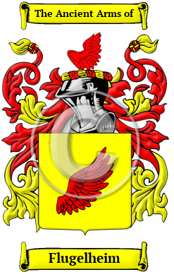 The surname Flugelheim was first found in Bavaria, where the name Fluegel was anciently associated with the tribal conflicts of the area. They declared allegiances to many nobles and princes of early history, lending their influence in struggles for power and status within the region. They branched into many houses, and their contributions were sought by many leaders in their search for power.