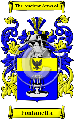 | Fontanetta History, Family Crest & Coats of Arms Etymology of FontanettaWhat does the name Fontanetta mean? The Fontanetta family can trace its noble origins to the Italian region of Tuscany. Although people were originally known only by a single name, it became necessary for people to adapt a second name to identify themselves as populations grew and travel became more frequent. The process of adopting fixed hereditary surnames was not complete until the modern era, but the use of hereditary family names in Italy began in the 10th and 11th centuries. Italian hereditary surnames were developed according to fairly general principles and they are characterized by a profusion of derivatives coined from given names. Although the most traditional type of family name found in the region of Tuscany is the patronymic surname, which is derived from the father's given name, local surnames are also found. Local names, which are the least frequent of the major types of surnames found in Italy, are derived from a place-name where the original bearer once resided or held land. Often Italian local surnames bore the prefix "di," which signifies emigration from one place to another, but does not necessarily denote nobility. The Fontanetta family lived in Bologna. Earliest records of this lineage date back to the year 483, when Egidio Fontana helped with the constitution of the new Venetian Republic. Early Origins of the Fontanetta familyThe surname Fontanetta was first found in Bolgna (Latin: Bononia), the largest city and the capital of Emilia-Romagna Region where the surname is derived from the Late Latin word "fontana," meaning "spring" or "well." It is quite likely that the first bearer of this name lived near such a place. Early History of the Fontanetta familyThis web page shows only a small excerpt of our Fontanetta research. The years 1520, 1524, 1552, 1587, 1605, 1614, 1630, 1634, 1714 and 1800 are included under the topic Early Fontanetta History in all our PDF Extended History products and printed products wherever possible. Fontanetta Spelling VariationsIn comparison with other European surnames, Italian surnames have a surprising number of forms. They reflect the regional variations and the many dialects of the Italian language, each with its own distinctive features. For example, in Northern Italy the typical Italian surname suffix is "i", whereas in Southern Italy it is "o". Additionally, spelling changes frequently occurred because medieval scribes and church officials often spelled names as they sounded rather than according to any specific spelling rules. The spelling variations in the name Fontanetta include Fontana, Fontani, Fontanella, Fontanelli, Fontanino, Fontanini, Fontanin, Fontanotti, Fontanot, Fontanazzi, Fontanari and many more. Early Notables of the Fontanetta familyLavinia Fontana (1552-1614), an Italian painter, regarded as the first woman artist; Giovanni Battista Fontana (1524-1587), an Italian painter and engraver; Prospero Fontana, a painter in Bologna around 1520 who worked much of his life in Rome; Count Alfonso Fontana, a 16th century composer of madrigals at the court of Modena and transferred to work in Rome in 1605; Giovanni Battista Fontana (born 1630), a violinist and a composer of violin sonatas from Brescia; and Carlo Fontana (1634-1714), A Swiss-born, Italian architect and pupil... Another 83 words (6 lines of text) are included under the topic Early Fontanetta Notables in all our PDF Extended History products and printed products wherever possible. Migration of the Fontanetta familyAn examination into the immigration and passenger lists has discovered a number of people bearing the name Fontanetta: Eugenia Fontana, who arrived in Providence, RI in 1867, Dominique Fontana, who was on record in Missouri in 1844, J Fontana, who arrived in San Francisco in 1851, and John Fontana, recorded in Charlottetown, in the Prince Edward Island census of 1891..