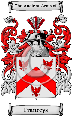 | Franceys History, Family Crest & Coats of Arms Etymology of FranceysWhat does the name Franceys mean? The surname Franceys is derived from the popular medieval given name Franciscus. Much of the popularity of this personal name was due to the famous religious figure, St. Francis of Assisi. Early Origins of the Franceys familyThe surname Franceys was first found in Oxfordshire, where the earliest record is Hugo Francus, or Franceis in 1135, at Oseney. Other early records of the name include Robert le Franceis in 1169 in the Pipe Rolls of Devon; Roger Franceis in 1177 in the Pipe Rolls of Hampshire; Adam le Francess in 1201 in the Assize Rolls of Somerset; and Robertus filius Franceis, in 1207 in the Curia Regis Rolls of Sussex. 1 Early History of the Franceys familyThis web page shows only a small excerpt of our Franceys research. Another 142 words (10 lines of text) covering the years 1143, 1189, 1190, 1213, 1296, 1400, 1519, 1574, 1587, 1604, 1633, 1658, 1670, 1688, 1707, 1715, 1740 and 1890 are included under the topic Early Franceys History in all our PDF Extended History products and printed products wherever possible. Franceys Spelling VariationsEndless spelling variations are a prevailing characteristic of Norman surnames. Old and Middle English lacked any definite spelling rules, and the introduction of Norman French added an unfamiliar ingredient to the English linguistic stew. French and Latin, the languages of the court, also influenced spellings. Finally, Medieval scribes generally spelled words according to how they sounded, so one person was often referred to by different spellings in different documents. The name has been spelled Francis, Frances, Franceys, Francies, Fraunces, Francys, Francess and many more. Early Notables of the Franceys familyJohn Fraunceys, Lord Mayor of London in 1400; Thomas Francis (c.1519-1574), English medical physician in London, born in Chester. He was President of the College of Physicians. 2
