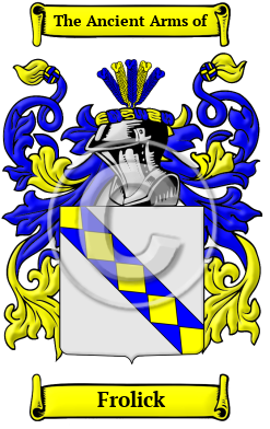 | Frolick History, Family Crest & Coats of Arms Etymology of FrolickWhat does the name Frolick mean? The surname Frolick belongs to the category of surnames that were derived from nicknames, usually based on a personal or physical characteristic of the initial bearer. In this instance, the name is derived from the Middle High German word "vraelich," which means "happy," or "cheerful." Thus, this surname evolved from a nickname for a merry and cheerful person. Early Origins of the Frolick familyThe surname Frolick was first found in Bavaria, where the name was anciently associated with the tribal conflicts of the area. They declared allegiances to many nobles and princes of early history, lending their influence in struggles for power and status within the region. They branched into many houses, and their contributions were sought by many leaders in their search for power. They held a family seat at Frolich in Bavaria. Early History of the Frolick familyThis web page shows only a small excerpt of our Frolick research. Another 143 words (10 lines of text) covering the years 1522, 1650, 1692, 1706, 1787, 1793, 1797, 1800, 1803, 1819, 1821, 1827, 1829, 1845, 1851, 1872, 1873, 1878 and 1879 are included under the topic Early Frolick History in all our PDF Extended History products and printed products wherever possible. Frolick Spelling VariationsSpelling variations of this family name include: Frolick, Frolich, Froelick, Frolicker, Frohlich, Frohlick, Froelig, Froellich, Froellick, Froehlick and many more. Early Notables of the Frolick familyEva Margareta Frölich (c.1650-1692), a Swedish mystic, a fortune teller, prophet, visionary and Pietistic writer.