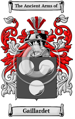 The surname Gaillardet was first found in Brittany, originally Armorica in ancient times, where the family has been a prominent family for centuries, and held a family seat with lands and manor. The family were well established in the region of Dol and several members of the family distinguished themselves through their contributions toward the community in which they lived and were rewarded with lands, titles and letters patent confirming their nobility.