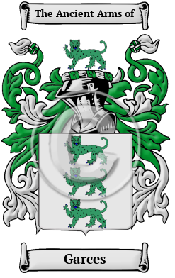 Portugal Spain Etymology of GarcesWhat does the name Garces mean? The Garces surname is an old Portuguese patronymic surname, derived from the father's given name, and metronymic surnames, which are derived from the mother's given name. Garces is thought to be a patronymic name formed from a now unknown medieval given name. An older Latin form of the surname was Garsea, the roots of which may well pre-date the Latin era and come from the Basque language. Early Origins of the Garces familyThe surname Garces was first found in Navarre, where the name is documented in the earliest records. Early History of the Garces familyThis web page shows only a small excerpt of our Garces research. Another 179 words (13 lines of text) covering the years 1134, 1150 and 1800 are included under the topic Early Garces History in all our PDF Extended History products and printed products wherever possible. Garces Spelling VariationsSpelling variations of this family name include: Garcia, García, Garsea, Garsía, Garsia, Garcies, Guarsea, Guarseas, Garsías, Garsias, Gassía, Gassia, Garci, Garcés, Garces, Garcíaz, Garciaz, Garséaz, Garseaz, Gasset, Garcet, Gracía, Gracia and many more. Early Notables of the Garces familywere Count García of Navarre (d. 857), García I, king of Leon from 910-914, and García I of Navarre, who ruled 925-970. King García IV ruled Navarre from 1134-1150. Also of note were Gil Garcíez Dazagra, knight of the order of Santiago, Diego García de Paredes and Alvar García de Mendoza, who fought for Ferdinand and Isabella during the conquest of Granada, Nuño García Torreño of... Another 66 words (5 lines of text) are included under the topic Early Garces Notables in all our PDF Extended History products and printed products wherever possible. Garces Rankingthe United States, the name Garces is the 10,766th most popular surname with an estimated 2,487 people with that name. 1 However, in France, the name Garces is ranked the 8,480th most popular surname with an estimated 500 - 1,000 people with that name. 2