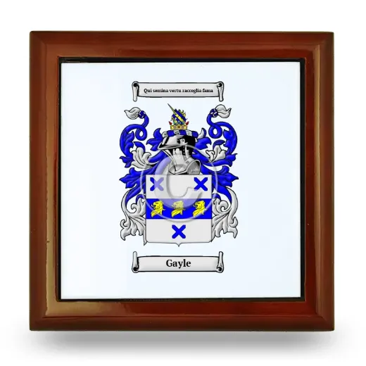 Made from the finest mahogany, this box has a brilliant lacquered cherry finish. Inside, you'll find cream-colored velvet. The hinged lid makes opening and closing this jewelry box easy. The Coat of Arms is heat-pressed onto a ceramic tile on the top of the box.