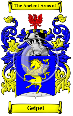 The surname Geipel was first found in Silesia, where the name Geisler was anciently associated with a noble family of the area. They declared allegiances to many nobles and princes of early history, lending their influence in struggles for power and status within the region. They branched into numerous houses, and their contributions were sought by many leaders in their search for power.