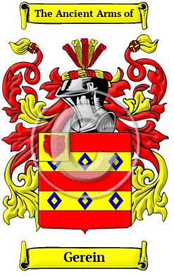 The surname Gerein was first found in Cambridgeshire where they held a family seat as Lords of the Manor. The Saxon influence of English history diminished after the Battle of Hastings in 1066. The language of the courts was French for the next three centuries and the Norman ambience prevailed. But Saxon surnames survived and the family name was first referenced in the 13th century when they held estates in that shire.