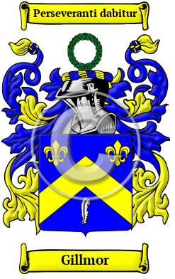 Scotland Ireland Etymology of GillmorWhat does the name Gillmor mean? The name Gillmor was first used by a Strathclyde-Briton family from the Scottish/English Borderlands. It was a name for a devotee of the Virgin Mary. Looking back further, we find the name Gillmor was originally derived from the Gaelic Gille Moire, which means follower of Mary or servant of Mary. 1 As an occupational name, the family was known as "the bearer of the broadsword to a Scottish chief." 2 or "follower of the chief, one who carried the chief's broadsword, from gille, a servant, and mor, large, great." 3 Early Origins of the Gillmor familyThe surname Gillmor was first found in Ayrshire (Gaelic: Siorrachd Inbhir Àir), formerly a county in the southwestern Strathclyde region of Scotland, that today makes up the Council Areas of South, East, and North Ayrshire, where they held a family seat from very ancient times. Early records from Cumberland show that between 1133 and 1156, Gilmor, son of Gilander founded the chapelry of Treverman (later Trierman) in the parish of Walton, Cumberland, site of Triermain castle. "The chapel was constructed of wattlework (capetta de virgin), and on its completion Gilmor appointed his kinsman Gillemor to the chaplaincy. These names, it may be mentioned, attest the strong Gaelic influence in Cumberland at that period." 4 Gilmore meaning "Gill the Big" was son of Gillanders the great Chief who lived about 1140. "Some time before 1144 'Gillemor filius Gilleconel' granted a half mark of silver to the church of S. Machute in Lesmahagow (Kelso, 187). Gillemure Albanach ('the Scot') and Gillemure mac Blancard witnessed the donation of the church of Torpennoth, etc. to Holyrood by Uchtred, Lord of Galloway, between 1153-65." 4 Early History of the Gillmor familyThis web page shows only a small excerpt of our Gillmor research. Another 348 words (25 lines of text) covering the years 1190, 1200, 1211, 1250, 1270, 1304, 1316, 1572, 1605, 1628, 1641, 1661, 1671 and 1890 are included under the topic Early Gillmor History in all our PDF Extended History products and printed products wherever possible. Gillmor Spelling VariationsIn the era before dictionaries, there were no rules governing the spelling or translation of names or any other words. Consequently, there are an enormous number of spelling variations in Medieval Scottish names. Gillmor has appeared as Gilmour, Gilmore, Gilmur, Gilmor, Gilmer, Gilmoore and many more. Early Notables of the Gillmor familySir John Gilmour of Craigmillar (1605-1671), Lord President of the Court of Session 1661-1671. He was the son of John Gilmour, writer to the signet and was bred to his father's profession, but on 12 Dec. 1628 he was admitted an advocate. "His professional connection lay among the royalist party, and he was appointed by the committee of... Another 58 words (4 lines of text) are included under the topic Early Gillmor Notables in all our PDF Extended History products and printed products wherever possible. Migration of the Gillmor family to IrelandSome of the Gillmor family moved to Ireland, but this topic is not covered in this excerpt. Another 57 words (4 lines of text) about their life in Ireland is included in all our PDF Extended History products and printed products wherever possible.