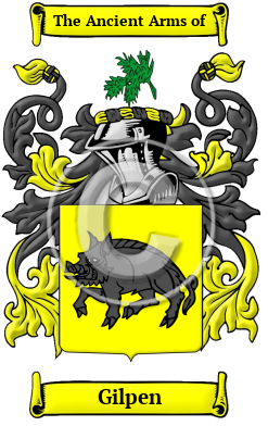 | Gilpen History, Family Crest & Coats of Arms Etymology of GilpenWhat does the name Gilpen mean? The ancestors of the Gilpen family arrived in England following the Norman Conquest of 1066. The name Gilpen came from given name Gilpin or in some circumstances from an ancestor and in "the son of Gilbert." 1 The surname came to denote a son or descendent of one who was named Gilpin. Another source notes that the name is "armorially identified with Galpine, a form of Galopin. Bernardus Galopin of Normandy, 1198 (Magni Rotuli Scaccarii Normanniae.) 2 Early Origins of the Gilpen familyThe surname Gilpen was first found in Westmorland "seated at Kentmere Hall, temp. King John." 3 "Kentmere Hall, the ancient residence of the Gilpins, and now occupied as a farmhouse, is a lofty quadrangular tower, four stories in height, built of rude ragstone, and having a massive and venerable aspect. Bernard Gilpin, the divine, was born at the Hall in 1517." 4 Early History of the Gilpen familyThis web page shows only a small excerpt of our Gilpen research. Another 154 words (11 lines of text) covering the years 1086, 1167, 1216, 1514, 1517, 1539, 1541, 1583, 1602, 1625, 1661, 1700, 1879 and 1890 are included under the topic Early Gilpen History in all our PDF Extended History products and printed products wherever possible. Gilpen Spelling VariationsMultitudes of spelling variations are a hallmark of Anglo Norman names. Most of these names evolved in the 11th and 12th century, in the time after the Normans introduced their own Norman French language into a country where Old and Middle English had no spelling rules and the languages of the court were French and Latin. To make matters worse, medieval scribes spelled words according to sound, so names frequently appeared differently in the various documents in which they were recorded. The name was spelled Gilpin, Gilpins, Gylpin, de Gilpin and others. Early Notables of the Gilpen familyBernard Gilpin (1517-1583) the 'Apostle of the North,' born at Kentmere, Westmorland, in 1517. "He came, both by father and mother, of ‘ancient and honourable’ families. His mother was daughter of William Laton of Delamain, Cumberland. Having received the rudiments of education at a grammar school in the north, Gilpin was sent to Queen's College, Oxford, at the age of sixteen. At Oxford he was much attracted to the works of Erasmus, and received help in acquiring Greek and Hebrew from Mr. Neale, a fellow of New College, and afterwards the author of the famous Nag's-head fable. Gilpin proceeded B.A. in... Another 162 words (12 lines of text) are included under the topic Early Gilpen Notables in all our PDF Extended History products and printed products wherever possible. Migration of the Gilpen family to IrelandSome of the Gilpen family moved to Ireland, but this topic is not covered in this excerpt. Another 180 words (13 lines of text) about their life in Ireland is included in all our PDF Extended History products and printed products wherever possible.