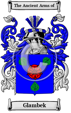 The surname Glambek was first found in Hamburg, where the name contributed greatly to the development of an emerging nation which would later play a large role in the tribal and national conflicts of the area. In later years the name branched into many houses, each playing a significant role in the local social and political affairs. The family name is also connected to several place names in the Holstein region.