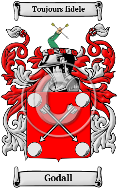 | Godall History, Family Crest & Coats of Arms Etymology of GodallWhat does the name Godall mean? Godall is an ancient Norman name that arrived in England after the Norman Conquest of 1066. The Godall family lived in Yorkshire, which was the largest county in northern England and was divided into three administrative ridings, North Riding, West Riding, and East Riding. It was bordered by the counties of Durham, Westmorland, Lancashire, Cheshire, Nottinghamshire and Lincolnshire. The town of York was the military capital of Roman Britain, the capital of Northumbria, and was the seat of an Archbishop. Yorkshire was also the home of the House of York, which was an English royal dynasty from 1461 to 1485. The reigning members of the House of York were Edward IV, Edward V and Richard III. Their rivalry with the House of Lancaster resulted in the Wars of the Roses, which lasted from 1455 to 1485 and ended when the Lancastrian Henry VII united the two houses by marrying Elizabeth, the daughter of Edward IV. Early Origins of the Godall familyThe surname Godall was first found in West Riding of Yorkshire at Gowdall, a township, in the parish of Snaith, union of Goole, Lower division of the wapentake of Osgoldcross. 1 In the 12th century, this parish was known as Goodale, 2 3 and literally meant "nook of land where marigolds grow," from the Old English words "golde" + halh." 2 However, two sources claim the name was derived from "good hall." 4 5 The former also postulates it could have been derived from "good - ale." The Yorkshire Poll Tax Rolls of 1379 have numerous entries of the family including: Villa de Goldale; Johannes Godhale; Ricardus de Goldall; and Johannes Godhall. Over in the East Riding of Yorkshire the Poll Tax of Howdenshire, again recorded in 1379 listed: Agnes Godhall; and Johannes Gudhall. 3 Early History of the Godall familyThis web page shows only a small excerpt of our Godall research. Another 74 words (5 lines of text) covering the years 1642, 1670, 1706, 1712, 1766 and 1967 are included under the topic Early Godall History in all our PDF Extended History products and printed products wherever possible. Godall Spelling VariationsEndless spelling variations are a prevailing characteristic of Norman surnames. Old and Middle English lacked any definite spelling rules, and the introduction of Norman French added an unfamiliar ingredient to the English linguistic stew. French and Latin, the languages of the court, also influenced spellings. Finally, Medieval scribes generally spelled words according to how they sounded, so one person was often referred to by different spellings in different documents. The name has been spelled Goodall, Goodale, Godall, Godale, Goodell and others. Early Notables of the Godall familyCharles Goodall . (1642-1712), English physician, born in Suffolk in 1642, studied medicine at Leyden, and graduated M.D. at Cambridge 26 Nov. 1670. 6