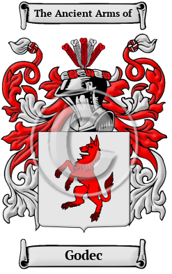Germany Early Origins of the Godec familyThe surname Godec was first found in Hamburg, where the name contributed greatly to the development of an emerging nation which would later play a large role in the tribal and national conflicts of the area. In later years the name branched into many houses, each playing a significant role in the local social and political affairs. Gode is also connected to several place names in the Holstein region. We did find this interesting entry that we felt we should include. William Godel (fl. 1173), was a historian, who "is only known from the allusions in his chronicle, in which he never mentions himself by name. Under the year 1145 he says: ‘This year I, who compiled this work from various histories, entered a monastery; in age a youth, and by race an Englishman.’ But at the end of the manuscript (Bibliothèque Nationale, 4893, sec. xiii) there is a note in a hand of the fourteenth century, stating that the author was William Godel, a monk of St. Martial at Limoges. . He was ordained priest of Leuroux by Pierre de la Châtre, archbishop of Bourges, who died in 1171. Godel seems to have been fond of travel, and so perhaps often changed his monastery till, dying at St. Martial, he left his chronicle there. " 1 Early History of the Godec familyThis web page shows only a small excerpt of our Godec research. Another 110 words (8 lines of text) covering the years 1518, 1841, 1862 and 1873 are included under the topic Early Godec History in all our PDF Extended History products and printed products wherever possible. Godec Spelling VariationsSpelling variations of this family name include: Gode, Godde, Goddes, Godeassi, Godeau, Godec, Godefroy, Gödel, Godelin, Godelmann, Godenraedt, Gödens, Gödesen, Godet and many more. Early Notables of the Godec familyMore information is included under the topic Early Godec Notables in all our PDF Extended History products and printed products wherever possible. Migration of the Godec familySome of the first settlers of this family name or some of its variants were: settlers who traveled to the New World and established themselves along the eastern seaboard of the United States and Canada in the 18th and 19th centuries..