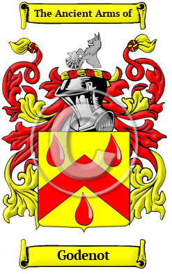 England Etymology of GodenotWhat does the name Godenot mean? The surname Godenot is mistakenly thought to be given to a person who was easily satisfied or whose achievements "good enough." 1 "The original bearer was perhaps a sufficiently worthy fellow." 2 Another source claims the name was a local name derived from "Godin," the name of the first settler of an area and "hough, haugh" or "how" which meant a hill or mound. 3 Early Origins of the Godenot familyThe surname Godenot was first found in Yorkshire where the Poll Tax Rolls of 1379 listed Radulphus Godenogh; Johannes Godynogh; and Robertus Gudynegh as all holding lands there at that time. 3 While the lion's share of the family hailed from here there was one lone listing in the Hundredorum Rolls of 1273 in Kent. Geoffrey Godynogh was listed there at that time. 4 Early History of the Godenot familyThis web page shows only a small excerpt of our Godenot research. Another 86 words (6 lines of text) covering the years 1682, 1686, 1689, 1743, 1750, 1786, 1827, 1830, 1844, 1845 and 1875 are included under the topic Early Godenot History in all our PDF Extended History products and printed products wherever possible. Godenot Spelling VariationsAnglo-Norman names are characterized by a multitude of spelling variations. When the Normans became the ruling people of England in the 11th century, they introduced a new language into a society where the main languages of Old and later Middle English had no definite spelling rules. These languages were more often spoken than written, so they blended freely with one another. Contributing to this mixing of tongues was the fact that medieval scribes spelled words according to sound, ensuring that a person's name would appear differently in nearly every document in which it was recorded. The name has been spelled Goodenough, Goodenowe, Goodenuff and others. Early Notables of the Godenot familyRichard Goodenough (fl. 1686), English conspirator, an attorney of bad repute, who contrived nevertheless to obtain the under-sheriffdom of London, which he held in turn with his brother Francis for some years. "In July 1682 the justices of the peace fined him 100l. because he refused to alter the panel as they pleased at the sessions at Hicks's Hall. He was to have appeared along with Grey on 7 May 1689 as a witness against John Charlton, also charged with high treason against Charles II, but both had the good sense to keep away. According to Swift, Goodenough went to Ireland... Another 160 words (11 lines of text) are included under the topic Early Godenot Notables in all our PDF Extended History products and printed products wherever possible. Migration of the Godenot familyFor many English families, the political and religious disarray that plagued their homeland made the frontiers of the New World an attractive prospect. Thousands migrated, aboard cramped disease-ridden ships. They arrived sick, poor, and hungry, but were welcomed in many cases with far greater opportunity than at home in England. Many of these hardy settlers went on to make important contributions to the emerging nations in which they landed. Among early immigrants bearing the name Godenot or a variant listed above were: Richard Goodenough, who settled in New England in 1686; Anne Goodenowe, wife of Edmund, mother of John and Thomas, who settled in Boston Massachusetts in 1638.