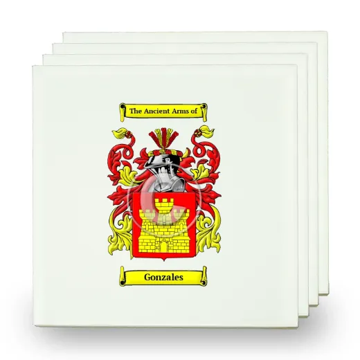 Set of Four Small Tiles with Coat of Arms