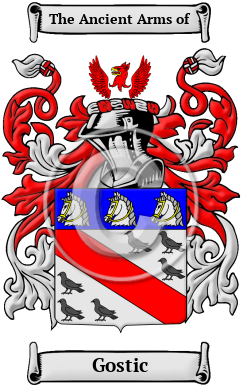 England Etymology of GosticWhat does the name Gostic mean? The Gostic surname is a habitational name, taken on from the place named Goswick in Northumberland. This place name is derived from the Old English words "go-s," meaning "goose," and "wi-c," meaning an "outlying farm." Early Origins of the Gostic familyThe surname Gostic was first found in Bedfordshire (Old English: Bedanfordscir), located in Southeast-central England, formerly part of the Anglo-Saxon kingdom of Mercia, where they held a family seat as Lords of the Manor. The Saxon influence of English history diminished after the Battle of Hastings in 1066. The language of the courts was French for the next three centuries and the Norman ambience prevailed. But Saxon surnames survived and the family name was first referenced in the 13th century the family were first seated. Early History of the Gostic familyThis web page shows only a small excerpt of our Gostic research. Another 119 words (8 lines of text) covering the years 1455, 1487, 1538, 1565, 1588, 1595, 1596, 1607, 1611, 1615, 1619, 1630, 1650, 1668, 1671, 1720 and 1766 are included under the topic Early Gostic History in all our PDF Extended History products and printed products wherever possible. Gostic Spelling VariationsSpelling variations of this family name include: Gostwyck, Gostwick, Gostick, Gosticke, Gostidge, Gostige, Gostwitch, Goswick, Goswyck, Goswich and many more. Early Notables of the Gostic familySir William Gostwick (1565-1615), Sheriff of Bedfordshire (1595-1596), created 1st Baronet Gostwick, of Willington, co. Bedford on 25 November 1611; Sir Edward Gostwick, 2nd Baronet (1588-1630)... Another 26 words (2 lines of text) are included under the topic Early Gostic Notables in all our PDF Extended History products and printed products wherever possible. Migration of the Gostic familySome of the first settlers of this family name or some of its variants were: Joseph Gostwick, who came to Maryland in 1677.